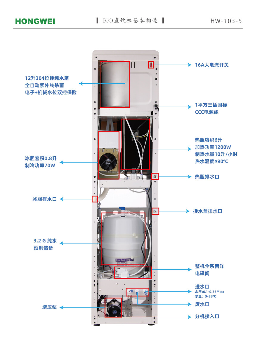 4、≥90℃热水12升/小时,6升304不锈钢热胆(1200W),无水不加热,真正防干烧;